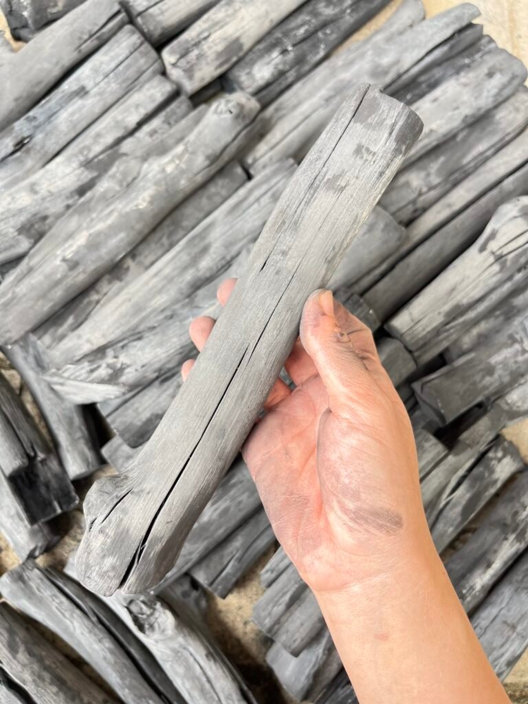 Our binchotan charcoal or white charcoal is made from selected pelawan wood or tristaniopsis merguensis from Central Kalimantan. A traditional charcoal made by slowly firing the wood at extremely high heat over several days until it’s carbonized. It’s harder than black charcoal and sound like metallic when struck.